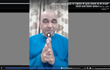 भारती भाषा संवर्धन संस्थान द्वारा आयोजित "राजभाषा उत्सव" उद्घाटन समारोह RajBhasha Utsav 2020 पर राष्ट्रकवि श्री सुरेश अवस्थी जी का शुभकामना सन्देश